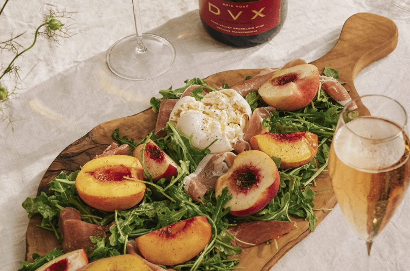 After blending the DVX each year, we set aside part of the blend and add a small amount of red Pinot Noir to give the wine its beautiful rose color.  A shorter aging time on the yeast as compared to DVX allows the red fruit flavors to express themselves in balance with the toasty, yeast notes. 2019 was a lovely vintage that resulted in balanced wines with excellent fruit expression. The small addition of red wine to the blend shifted the personality of the wine in favor of Pinot Noir, but without sacrificing the elegance of the Chardonnay.